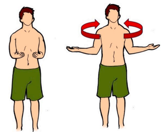 Com os cotovelos juntos ao tronco realize o movimento de rotação externa conjugados com a inspiração com carga progressiva, se disponível, utilize uma faixa de theraband de resistência leve ou moderada, de acordo com tolerância.
