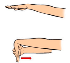 Realize o alongamento dos punhos, mãos e dedos em tempo expiratório na posição dorsal e palmar. Não esqueça de realizar o alongamento em todos os dedos, inclusive nos polegares.